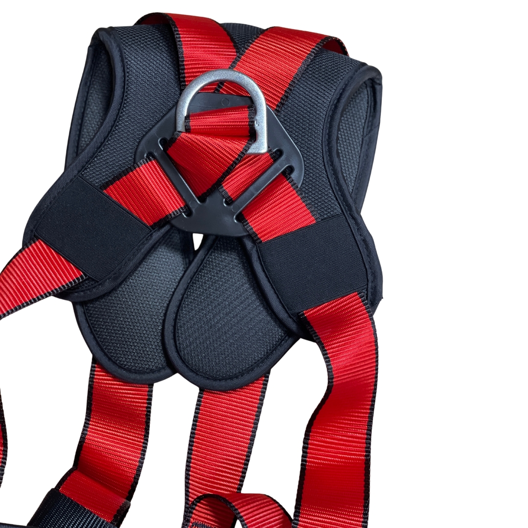- Arnés: Cintas de poliéster de alta resistencia, hebillas y conectores de acero.