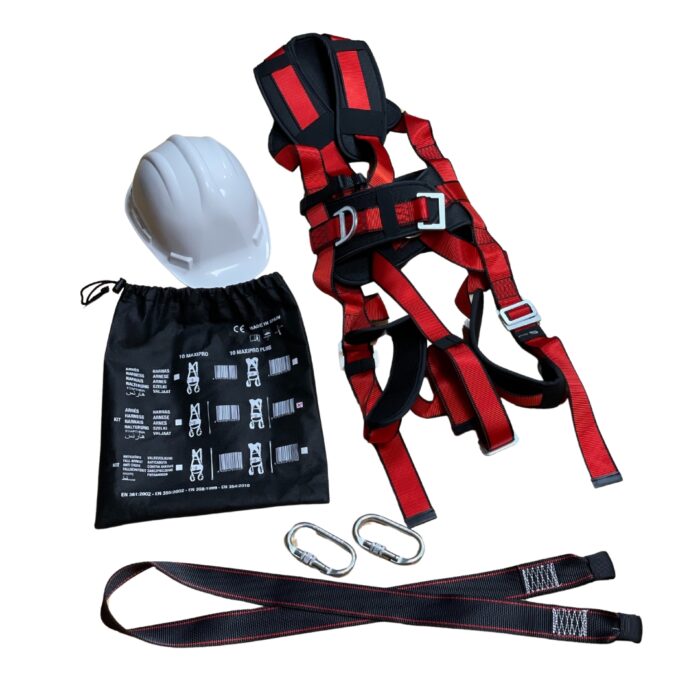 El Kit de seguridad completo KC-G es la solución integral ideal para trabajos en altura, especialmente diseñado para operarios que trabajan en cestas portaoperarios, plataformas elevadoras y todo tipo de trabajos verticales. Este kit incluye todos los elementos necesarios para garantizar la máxima protección y seguridad según las normativas vigentes: arnés de seguridad completo, elementos de amarre, mosquetones y casco de seguridad.