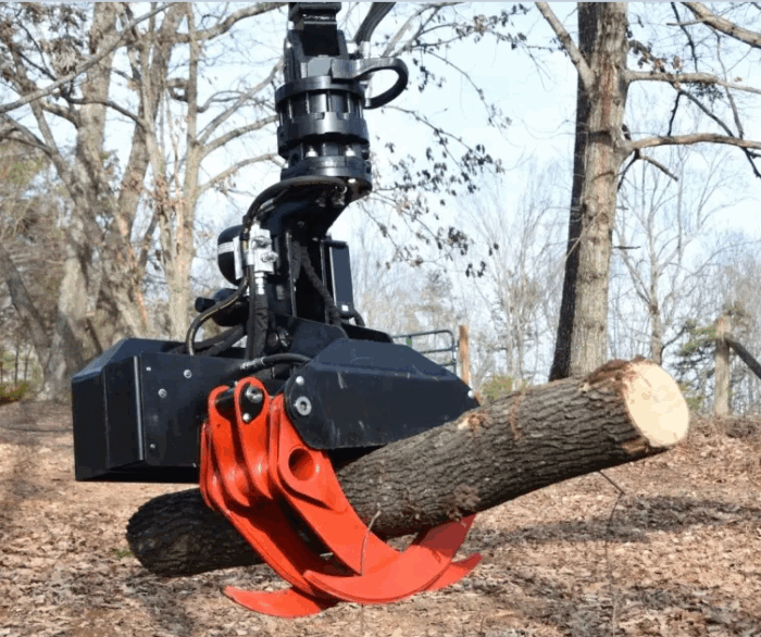 Cabezal forestal para cortar arboles. Taladora forestal para gruas fabricadas siguiendo los más altos estándares de calidad. Esta pinza se inclina hasta 90º automáticamente una vez abierta, permitiendo agarrar la madera facilmente. Una vez la pinza esté en la posición deseada, el operador puede cerrarla y comenzar el proceso de corte . La pinza seguirá sosteniendo la sección de corte, para después dejar la madera en el suelo con toda seguridad. Con este sistema es posible cortar árboles rápidamente ,tanto de manera vertical como horizontal y procesar un área extensa en poco tiempo.